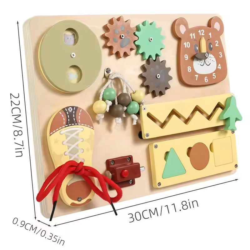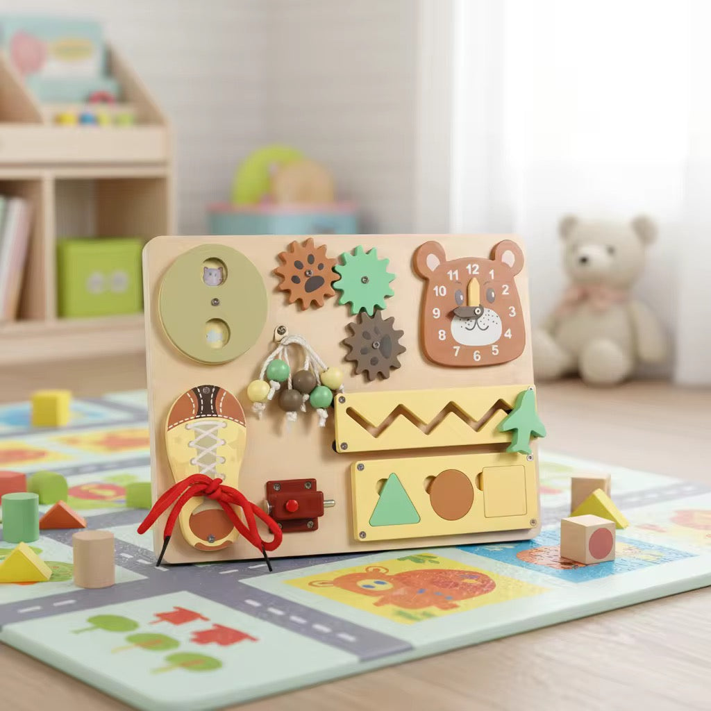 🧸 Busy Board Montessori en Bois – Tableau d’Activités Sensoriel pour Enfant