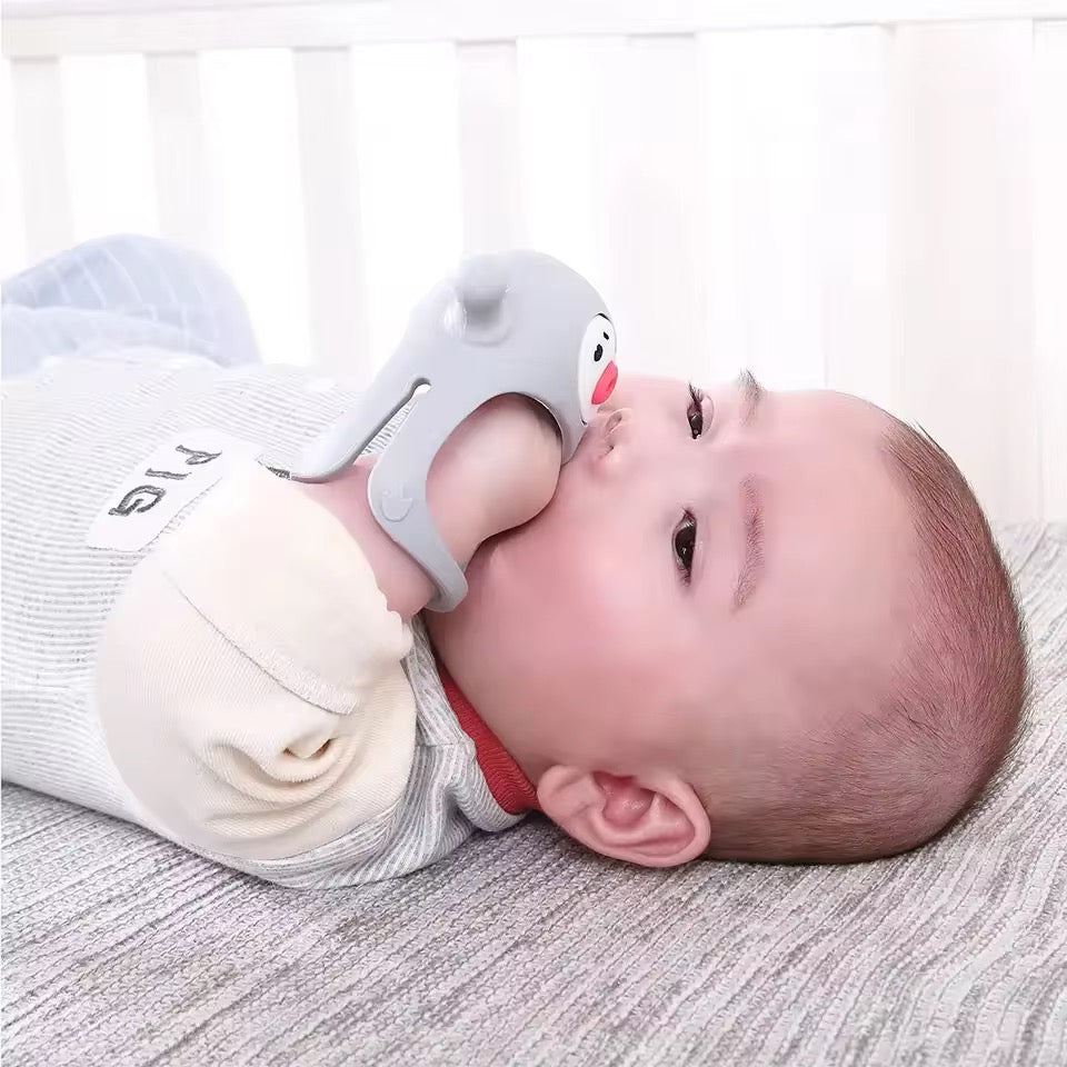 Soulagez les douleurs de poussée dentaire de votre bébé en toute sécurité avec ce jouet de dentition en forme de pingouin, conçu pour les tout-petits de 0 à 6 mois. Ce jouet multifonction peut être utilisé comme une tétine ou un anneau de dentition et se porte au poignet pour éviter les chutes. Idéal pour les bébés qui refusent les tétines classiques !
