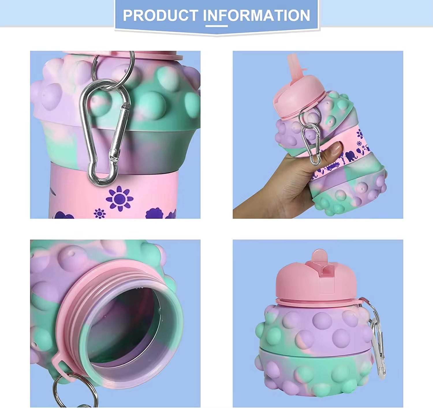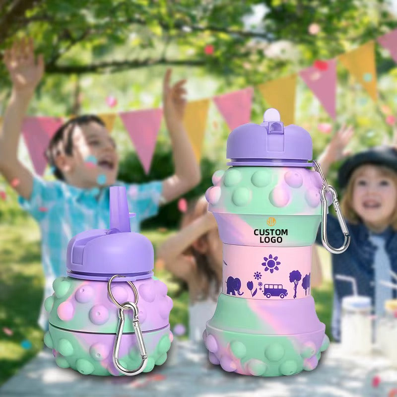 Gourde Pliable en Silicone – Colorée et Ludique – Avec Mousqueton*