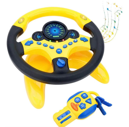 Le volant est disponible en jaune et noir. Il comporte 9 boutons, dont deux clignotants, un klaxon et des feux d'urgence. Il suffit de tourner la clé de contact pour commencer à jouer ! Les horloges du volant s'illuminent en vert. Son design et ses LED donneront à votre enfant l'impression d'être sur la route au volant. Le volant tient parfaitement dans la main de votre enfant. Il est temps pour lui de simuler la conduite.